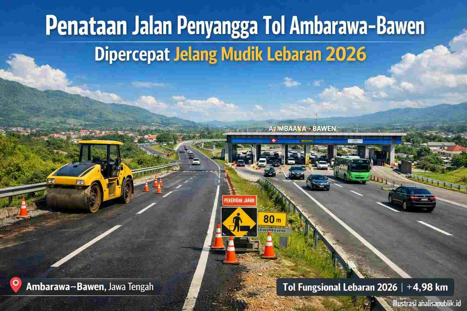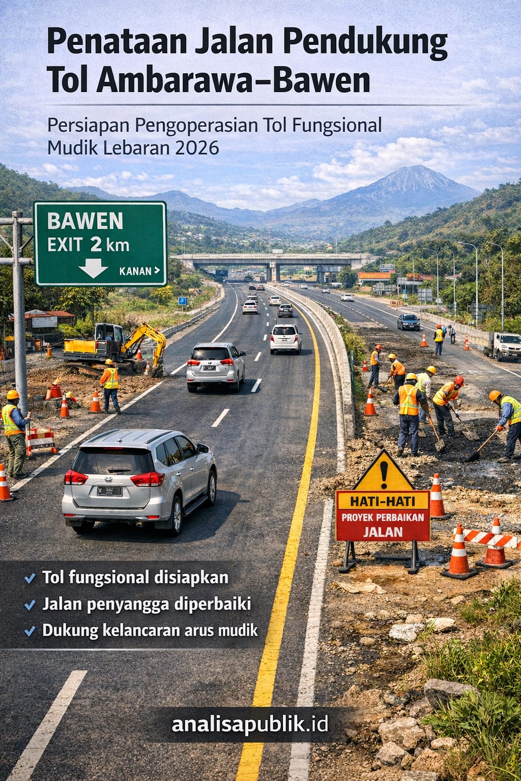 UNGARAN – analisapublik.id | Upaya penataan jalan pendukung di sekitar ruas Tol Yogyakarta–Bawen Seksi B Ambarawa–Bawen mulai dipercepat menjelang arus mudik Lebaran 2026. Langkah ini dilakukan sebagai bagian dari persiapan pengoperasian tol secara fungsional pada masa libur keagamaan tersebut.