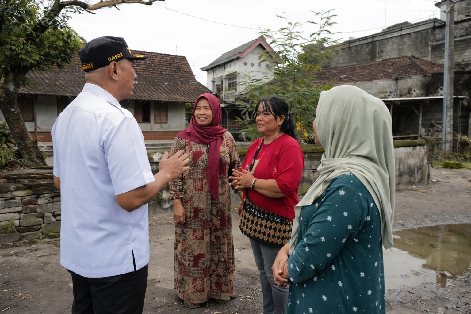 Bupati Tulungagung Gatut Sunu Wibowo berdialog dengan warga di Desa Sambirobyong saat meninjau langsung kondisi jalan rusak. Pertemuan berlangsung di depan rumah Bu Ani yang selama ini menyampaikan keluhan warga terkait kerusakan ruas penghubung antardesa.