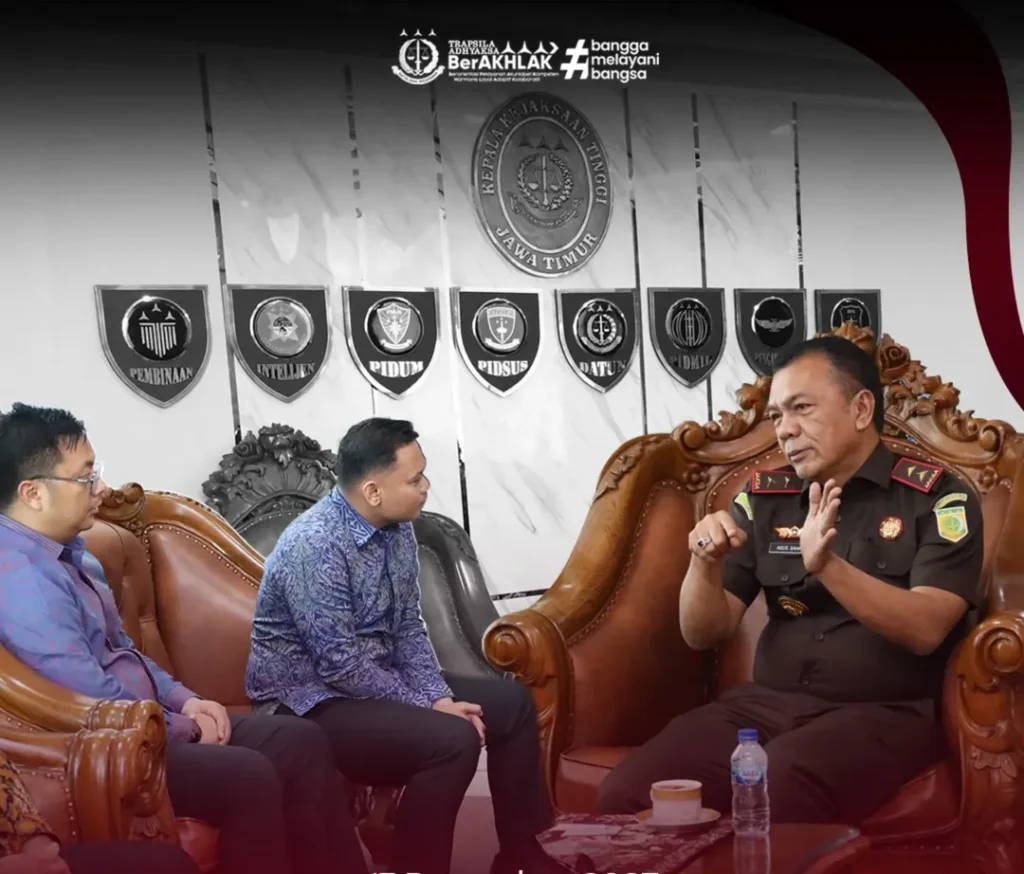 Surabaya – Kepala Kejaksaan Tinggi Jawa Timur, Agus Sahat ST, S.H., M.H., didampingi Asisten Perdata dan Tata Usaha Negara (Asdatun), menerima audiensi Direktur Utama PT PLN Icon Plus, Chipta Perdana, bersama jajaran di Ruang Kerja Kajati Jatim, Rabu (17/12/2025).