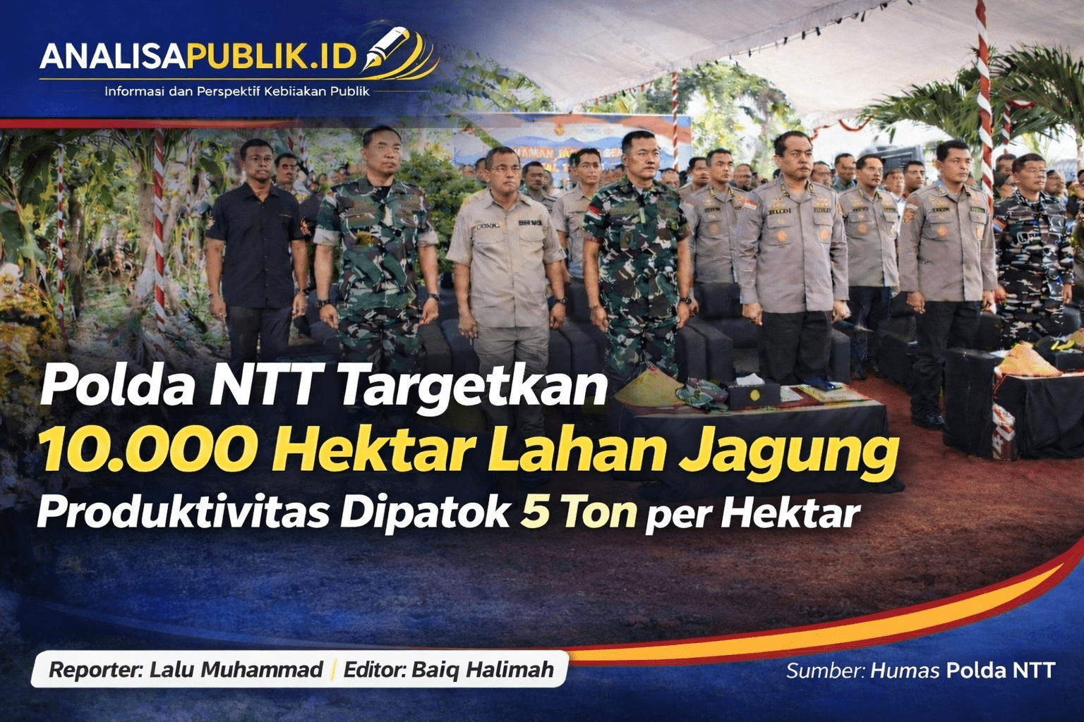 KUPANG – analisapublik.id | Polda Nusa Tenggara Timur memperluas program penanaman jagung sebagai bagian dukungan terhadap program Asta Cita Presiden Republik Indonesia di sektor ketahanan pangan. Pengembangan lahan ditargetkan mencapai 10.000 hektar dengan produktivitas rata rata sekitar 5 ton per hektar.