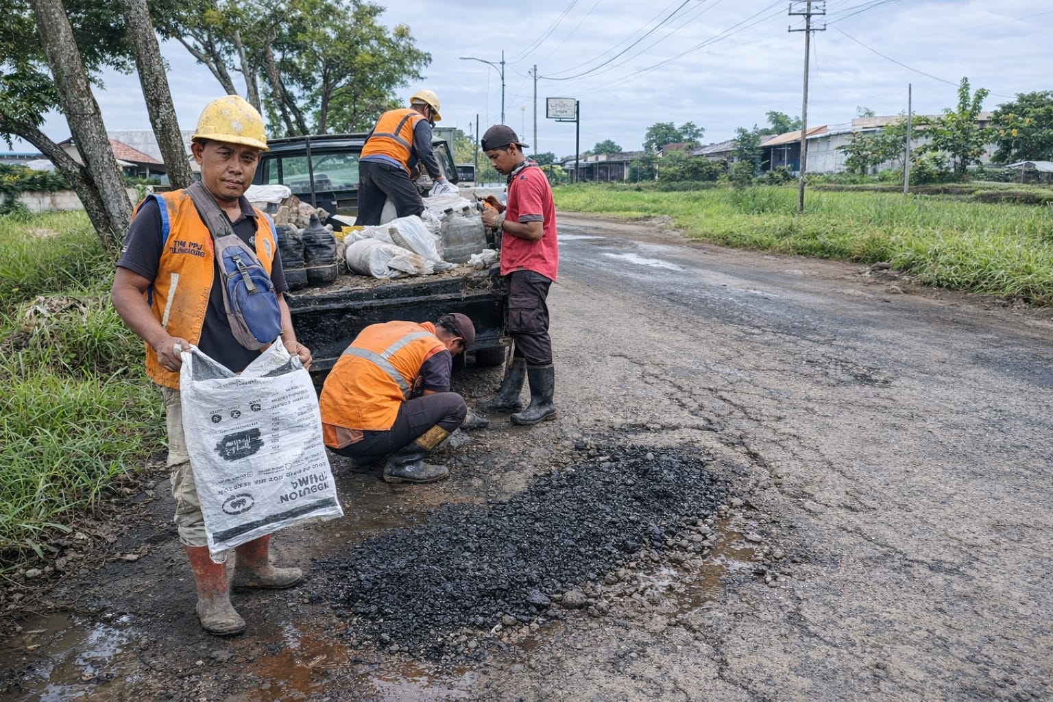 Petugas memetakan tingkat kerusakan dan menghitung volume lalu lintas harian sebelum pengerjaan. Lubang dibersihkan dari pasir dan kerikil agar daya lekat material maksimal. Segmen yang dominan dilalui sepeda motor menjadi prioritas karena memiliki tingkat risiko kecelakaan tunggal lebih tinggi.