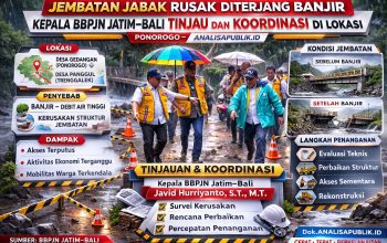 PASURUAN – analisapublik.id | Pembangunan Jembatan Bokwedi di Kecamatan Bugul Kidul, Kota Pasuruan, dipastikan mulai dilaksanakan pada Senin, 6 April 2026. Proyek yang berada di ruas strategis Jalan Ir. H. Juanda ini akan berlangsung hingga 30 November 2026, dengan skema rekayasa lalu lintas menyeluruh untuk menjaga kelancaran mobilitas masyarakat.