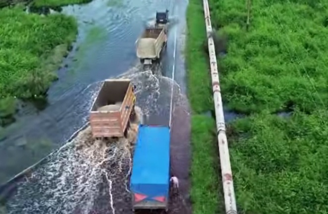Hingga berita ini diturunkan, genangan di badan jalan nasional masih setinggi lutut orang dewasa, membuat kendaraan kecil harus ekstra waspada atau memutar arah guna menghindari mesin mati. (Res)